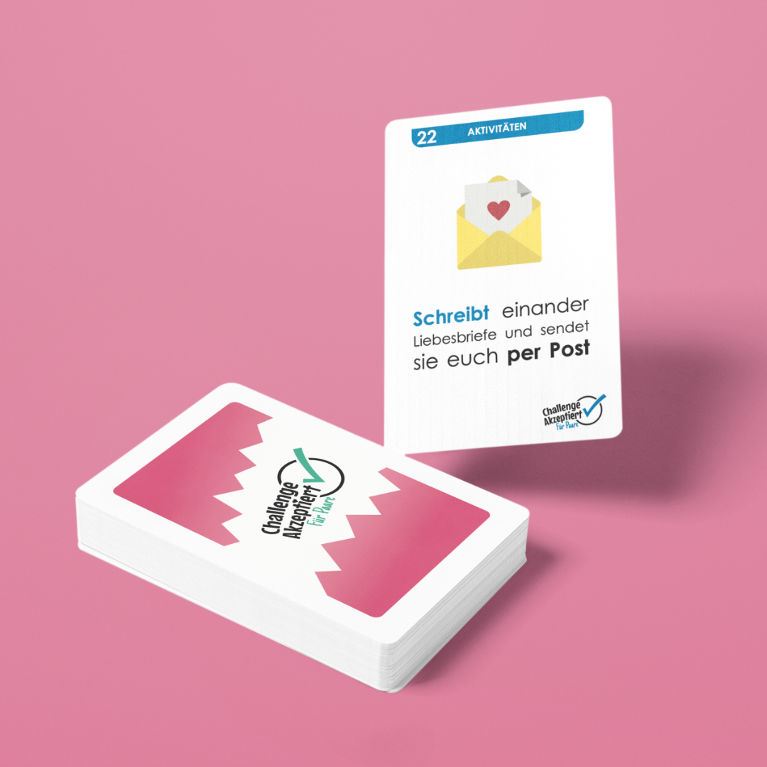 Challenge Akzeptiert - Für Paare™ ist mehr als nur ein Spiel. Es sind Momente der Verbundenheit, des Lachens und der Leidenschaft zu zweit. Das ideale Geschenk für jedes Paar und jeden Anlass.